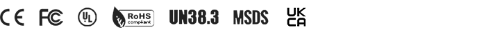 CE, ROHS, FCC, UL, UKCA, PAHS, MSDS, UN38.3 etc. |