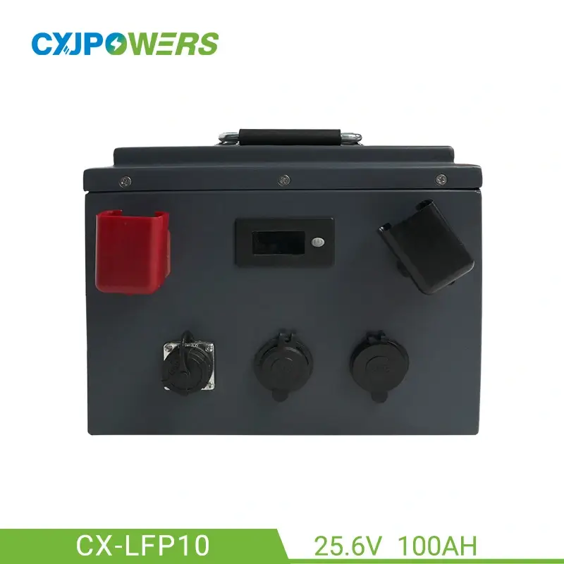 CXJPowers 24V 100Ah LiFePO4 battery is built with premium A-grade LiFePO4 cells, a robust metal casing, and advanced lithium energy technology. The CX-LFP10 can be uesd as RV or trolling motor battery, delivering a 2.56KWh energy storage capacity. Equipped with a smart BMS, it enhanced safety for long-lasting reliability. Ideal for solar power systems and off-grid applications, this battery provides stable, high-efficiency power in a compact yet durable design. The CXJPowers LiFePO4 battery offers superior performance, perfect choice for demanding power needs.