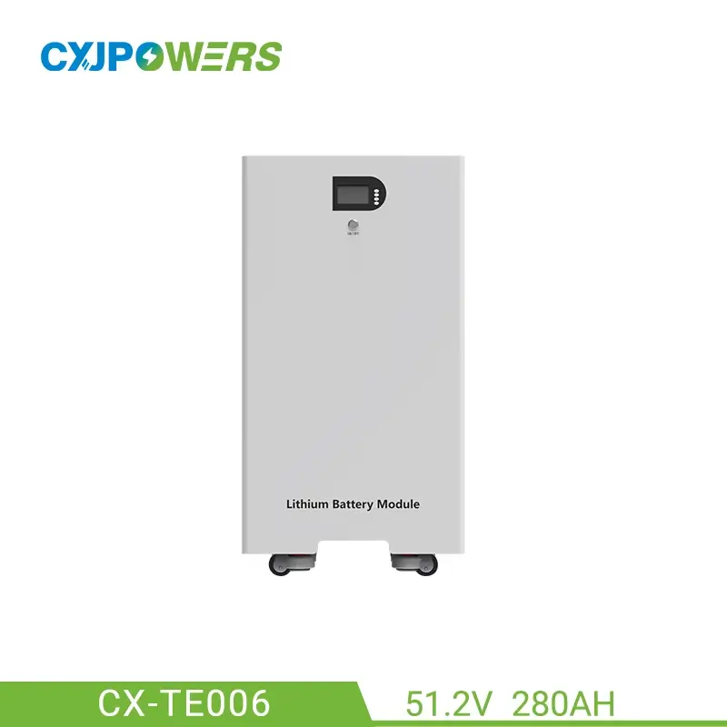 Household solar batteries CX-TE006 is a 14kWh home energy storage battery (home backup battery). It built-in 51.2V 280Ah LiFePO4 Battery and intelligent BMS, is a device integrating photovoltaic power generation system and energy system. It is suitable for off-grid energy storage system and outputs AC power with stable frequency and constant voltage.