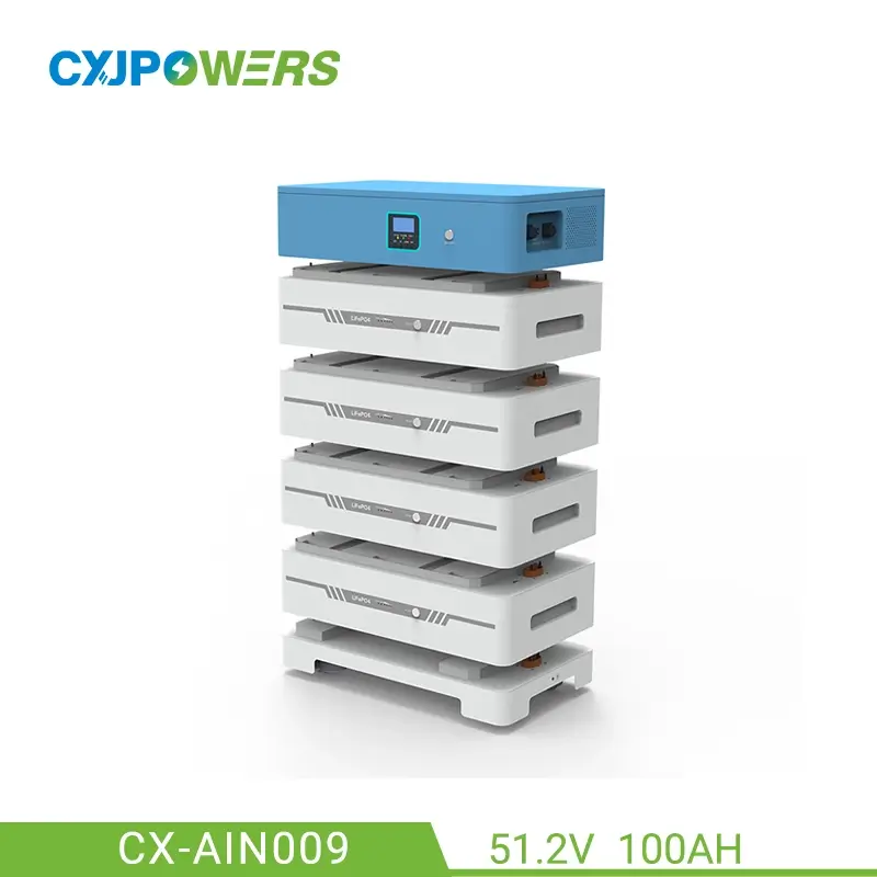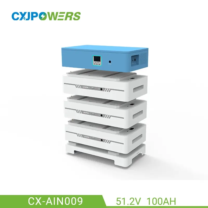 All in one home inverter battery storage sloar lithium CX-AIN009 is a stackable home inverter battery power system (home backup battery), whose capacity can up to 20kWh. It built-in 51.2V 100Ah LiFePO4 Battery, inverter and intelligent BMS management system, is a device integrating photovoltaic power generation system and energy storage system. It is suitable for off-grid energy storage system and outputs AC power with stable frequency and constant voltage.