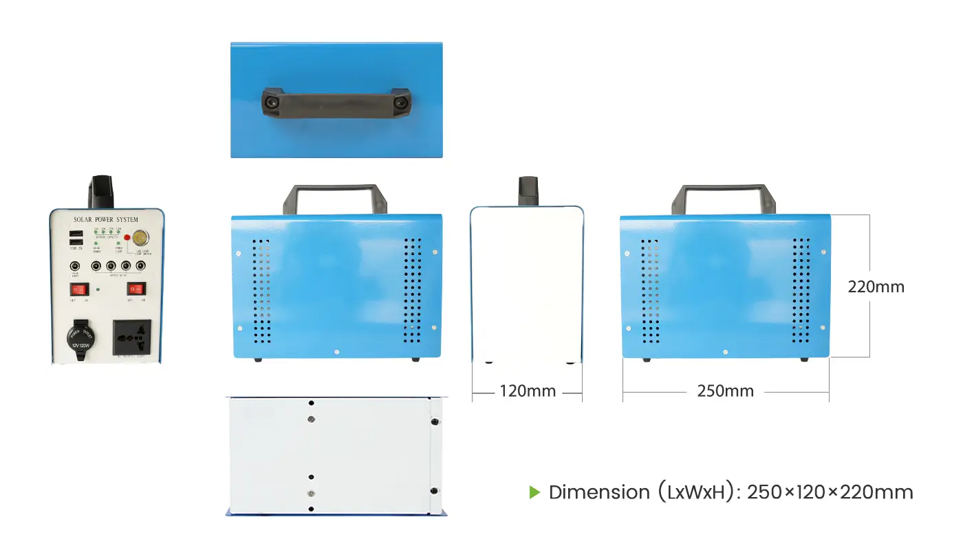 The portable solar power station ISP-T60W(B) can be used to provide power output to small-power electrical appliances, especially for lighting bulbs, which can last up to about 26 hours. It uses a ternary lithium-ion battery and has safety mechanisms such as overcharge protection, over-discharge protection, over-temperature protection, and short-circuit protection, so you can use it with confidence.
