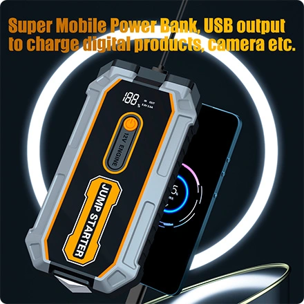 Portable 12v jump starter CX-S306 is a portable & rechargeable 3-in-1 multi-function jump starter power bank. It is versatile and can start most 12V vehicles such as cars, SUVs, motorcycles, boats and more.