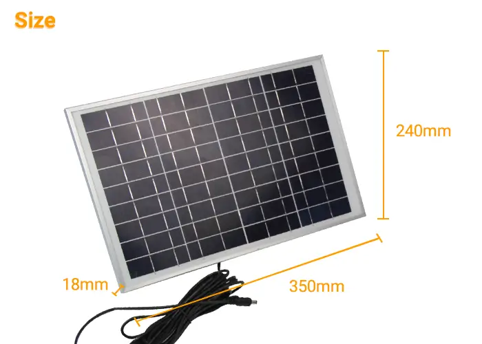 | Solar Panel Size | 350x240x18mm | 350×350×20mm | 350x460x18mm | 350x610x18mm |